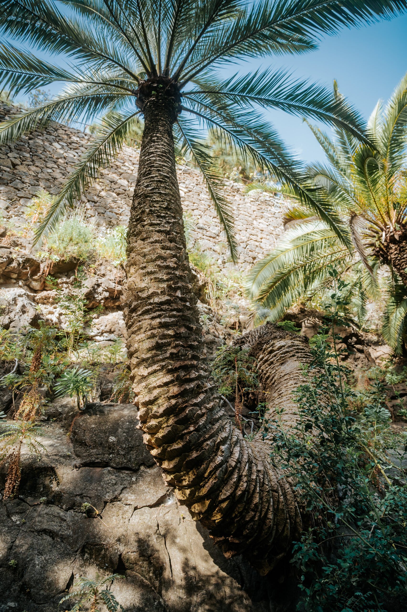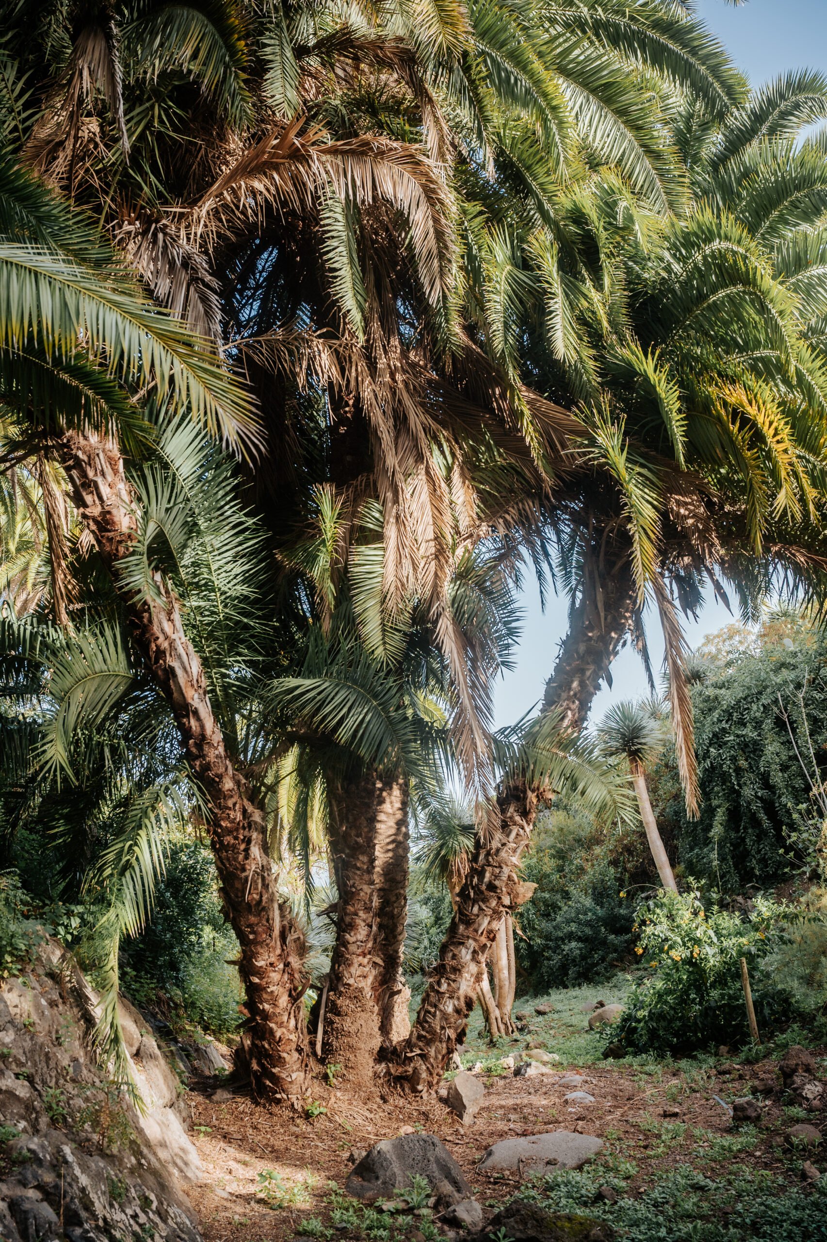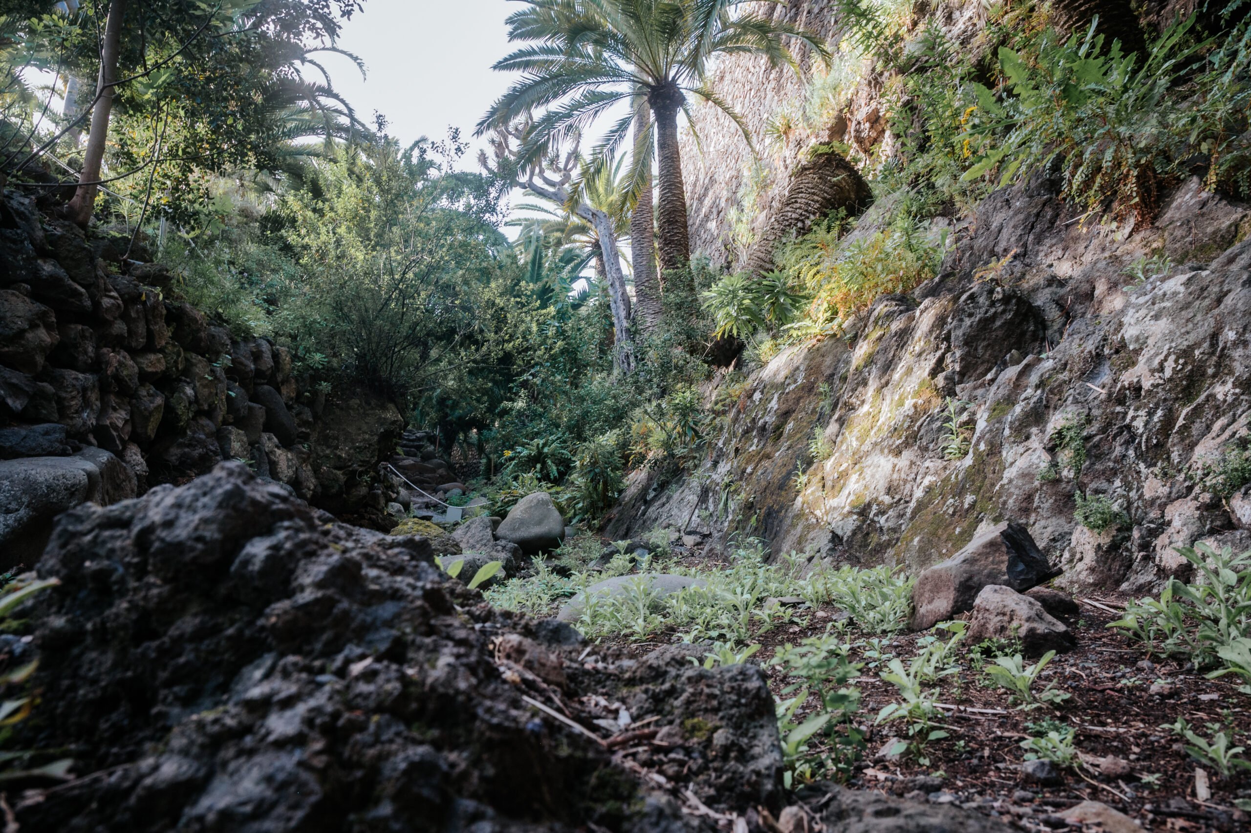 • Zona Termófila: Sobre los 500 metros, se encuentra esta franja fértil, donde abundan especies como sabinas y palmeras canarias, acebuches, codesos y lavandas, reflejo del uso agrícola tradicional de las medianías.