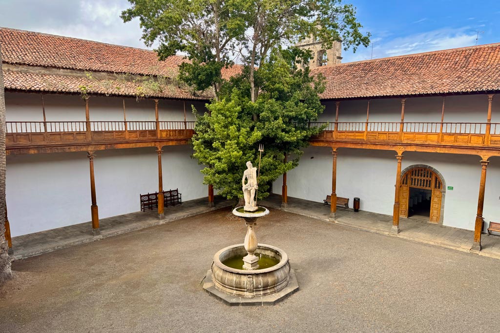 Founded in 1641, this convent housed the Recollect Franciscans until 1823. Since then, it has served various social and cultural purposes and is now home to the Municipal Library. Its architecture is organized around a magnificent tea-wood cloister with carved columns and a central fountain crowned by a statue of Neptune. Among its historical chapels are Our Lady of Sorrows and Mary Magdalene, both featuring exceptional Mudejar coffered ceilings and baroque decorative details.